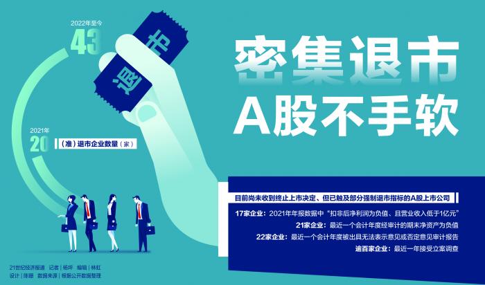 2022年,因触及财务退市指标而告别A股的企业数量,创出新高。